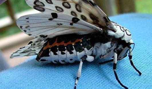 C'est un Hypercompe scribonia, un giant leopard moth. Ca fait 75 mm d'envergure et pour le mâle 50 mm de long (30 pour la femelle). La grenouille se croyait aussi grosse qu'un boeuf.