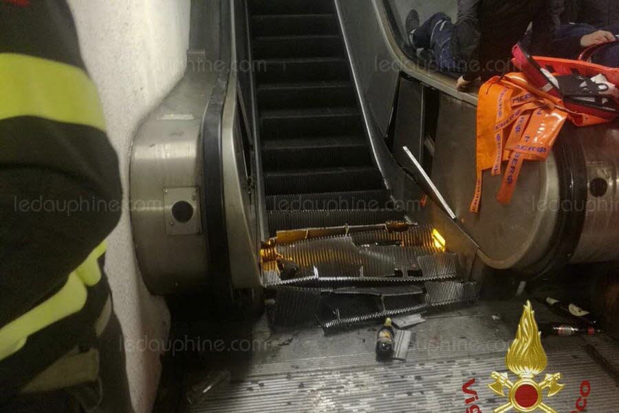 Pour le coup pas vraiment envie de sortir de blague,20 blessés dont un en état grave ça refroidit un peu. apparement c'est surtout au niveau des jambes,vu les images de ce qu'il reste de l'escalator ça peut se comprendre: