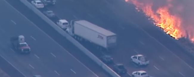 Ayant vécu une grande partie de ma vie en corse, où les feux sont légion, je peux vous dire qu'il fait sacrément chaud quand tu passes sur la route juste à côté de l'incendie (et nous on n'avait qu'une double voie, pas 2x4 voies).