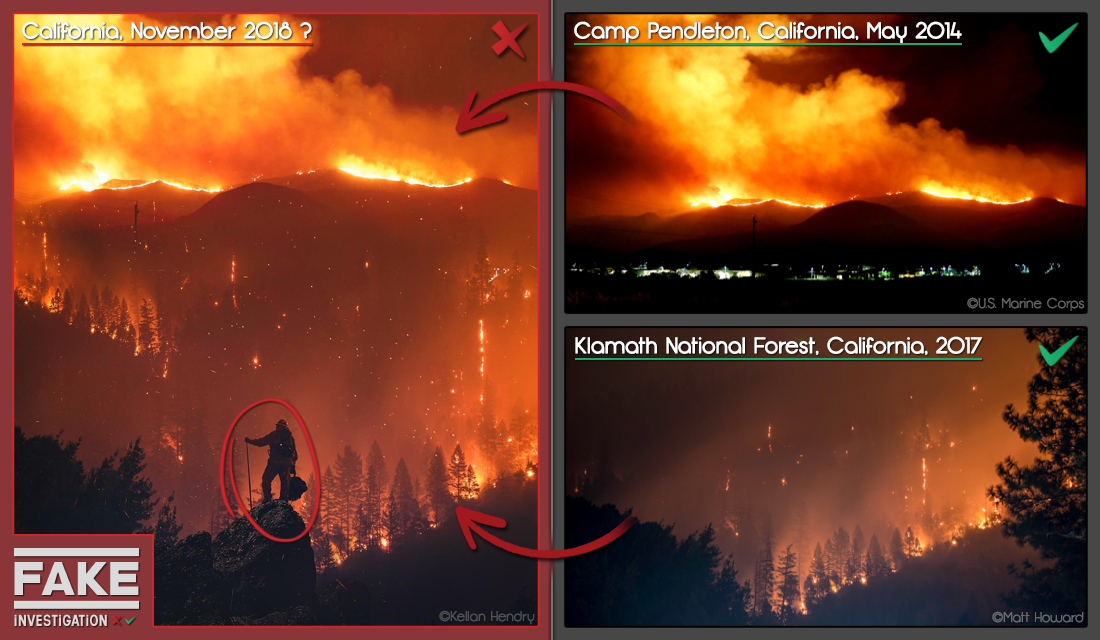 Celle du pompier est magnifique. (Enfin la photo, pas cool pour les 37 km² brulés si j'ai bonne mémoire. L'auteur précise que c'est un montage.)