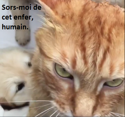 le désespoir se lit dans les yeux de ce chat à la fin.