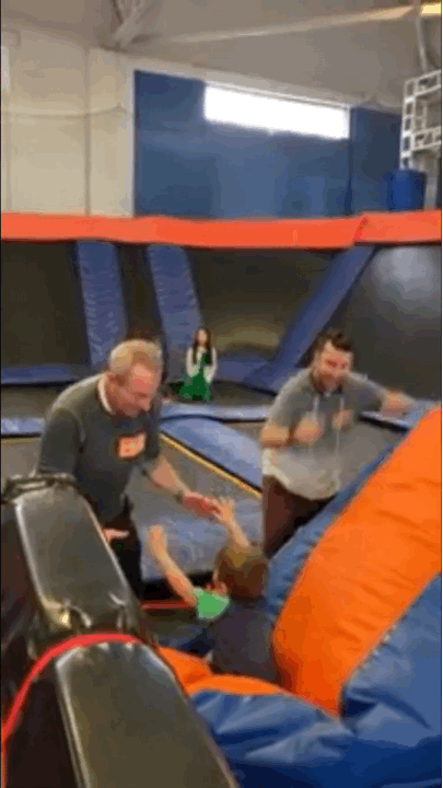 le père est peinard : le gamin va plus lui demander d'aller au trampoline de sitôt....