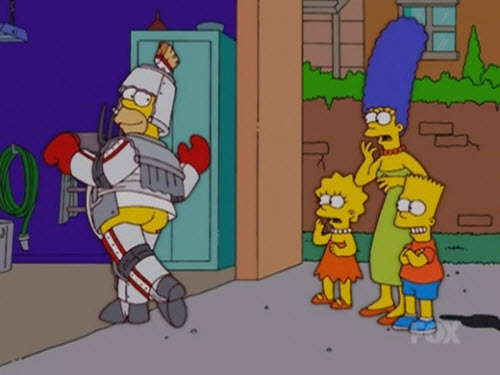 Ça doit être le vendeur de matos de sport local qui doit être content. Vu que ses armures ressembles bien a un mec qui aurait mis une armure de football+ une de hockey + des protection de roller + etc. . .