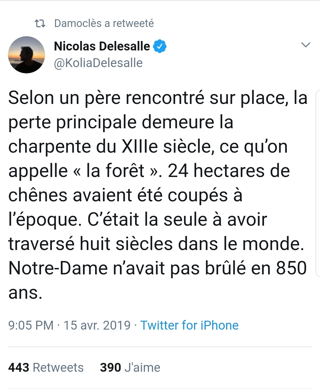 Re: Un important incendie à la cathédrale Notre-Dame de P...