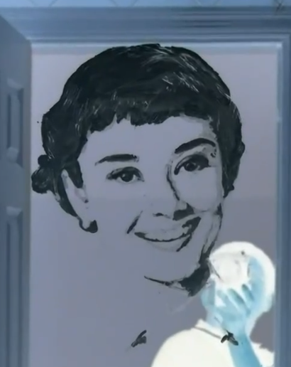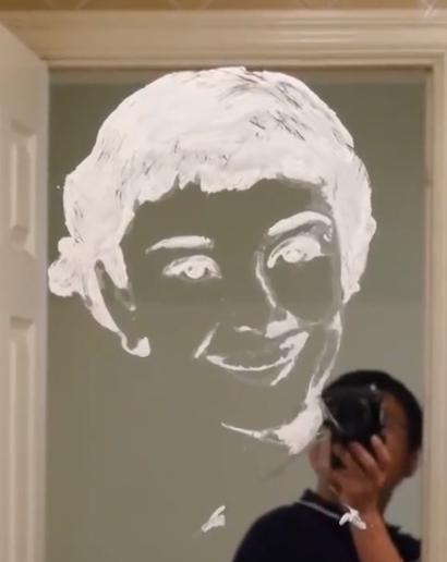 Re: Il réalise un portrait sur un miroir avec du dentifrice