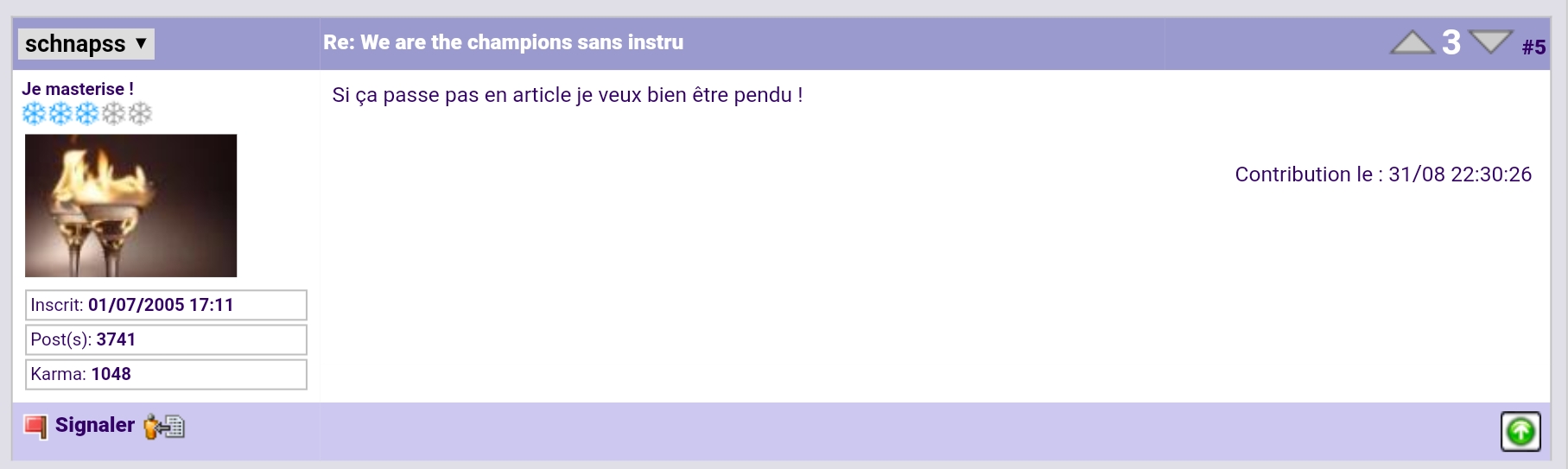 Re: La chanson « We Are the Champions » de Queen sans la ...