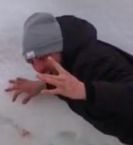 Ce gars vient d'apprendre la différence entre de la poudreuse et de la glace... en tous cas, il a le sens du ridicule. Si il avait sauté depuis un étage, ça aurait pu être moins drôle.