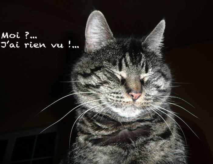 nan mais attendez une seconde, les chats ont pas passé le test du miroir : https://en.wikipedia.org/wiki/Mirror_testMais par contre ils comprennent la réfléxion des autres ?!