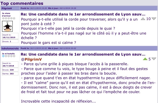 Toi t'es un bon. Ta vu passer un tweet ? super... des milliers de tweet débiles ou les gens racontent tout et n'importe quoi sont publiés toutes les heures... Le jeune pas très expressif ? Bah passe un quart d'heure dans une eau glaciale et on verra si tu es expressif après ça... Avoir pied dans le Rhône à cet endroit ? Tu es un rigolo toi... ah il te semble en fait... résumé : t'en sais rien du tout. Vive les pseudo-réinformateurs du web hein !