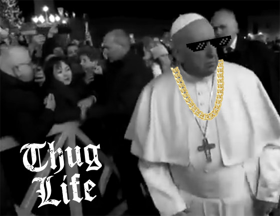 Vous avez bien entendu le pape ? Il a donné le mauvais exemple donc ne faites pas comme lui, si quelqu'un essaye de vous tirer de force, laissez le faire