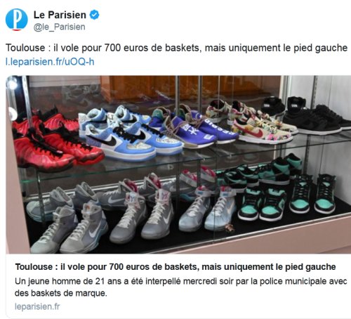Citation : @WeWereOnABreak @toutenkway en parlant de mode, mettre une baskette bleu au pied droite et une blanche au pied gauche c’est tout aussi déstabilisant.