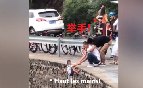 Re: Un papa suspend son fils au-dessus du vide pour prend...