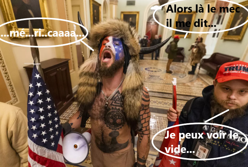 Plus sérieusement (je scinde mon post précédent pour ne pas mélanger humour et sérieux), je ne comprends pas du tout pourquoi les élus Républicains n'ont rien dit ces dernières semaines que cela soit aux électeurs et électrices mais pire, de ne pas avoir dit à Trump d'arrêter son cirque ridicule. Les USA n'en seraient pas là. Ne rigolons pas trop, vu les présidents qu'il y a en Russie, en Chine, au Brésil et aux USA (qui se targue d'être la plus grand démocratie du monde et qui fait la morale aux dictateurs des républiques bananières), qui font partie des pays les plus "riches" (je ne parle pas des habitants mais du pays), rien ne nous empêche de dire qu'on va avoir la même chose chez nous. Il suffira de voter pour un(e) candidat populiste et on aura la même chose.