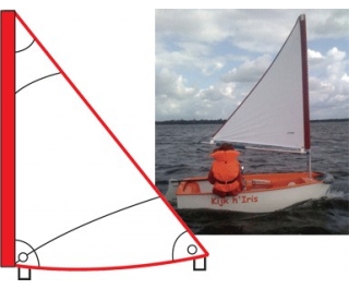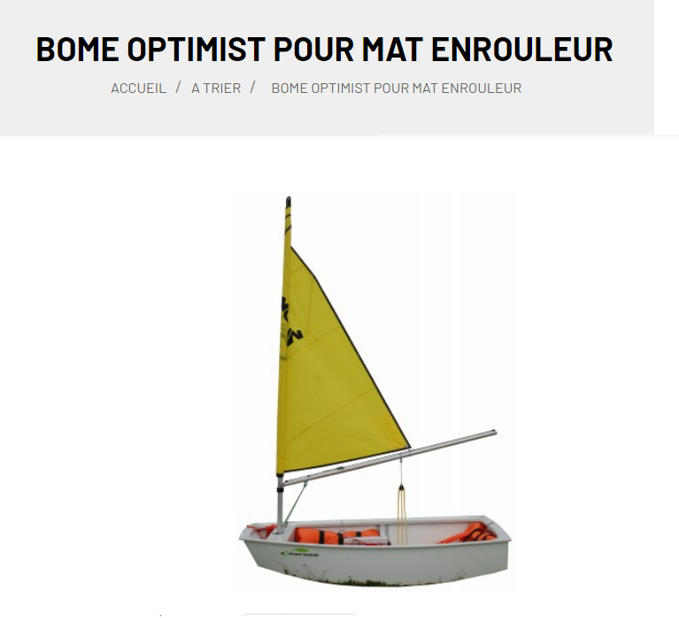 C'est peut-être une voile tempête. C'est vrai que la forme de la voile n'est pas celle habituelle mais tu peux mettre d'autres voiles sur un optimist, bien que ce soit rare. Et le mat aussi est plus grand. Mais je ne connais pas d'autre dériveur avec une proue plate.  Edit: je viens même de trouver une bôme à enrouleur pour voile triangulaire pour Optimist. On n'arrête pas le progrès.
