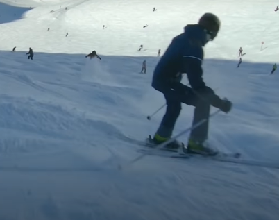 Magnifique! Je relève deux détails qui me laissent penser qu'il est grisé par sa propre maestria (DANGER): - présence d'autres skieurs.... le gars peut être le meilleur skieur du monde, à cette vitesse il ne fera pas de virage serré... comme en slalom géant. - absence de casque. La neige c'est mou....jusqu'à une certaine vitesse.
