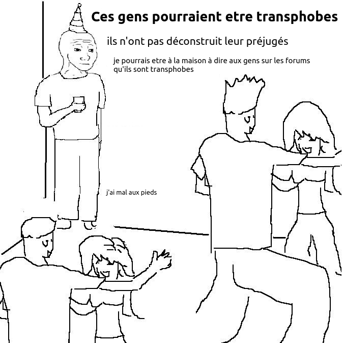 Toi tu dois être le mec / la nana / agenré.e /asexué.e / autre (choisis ton camp camarade) qui fait chier dans les soirées. Le genre qui te donne pas envie de t'intéresser à une cause. Après si c'est du bait, j'ai mordu +1.