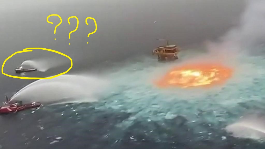La plateforme à côté appartient à ... Pemex ! Citation : Angel Carrizales, directeur de l'autorité mexicaine de réglementation de la sécurité pétrolière, a assuré sur Twitter (en espagnol) que l'incident n'avait "généré aucun déversement". On va les croire ! Après tout, pour une entreprise dans le top du classement des pollueurs, ils savent certainement mieux que nous !