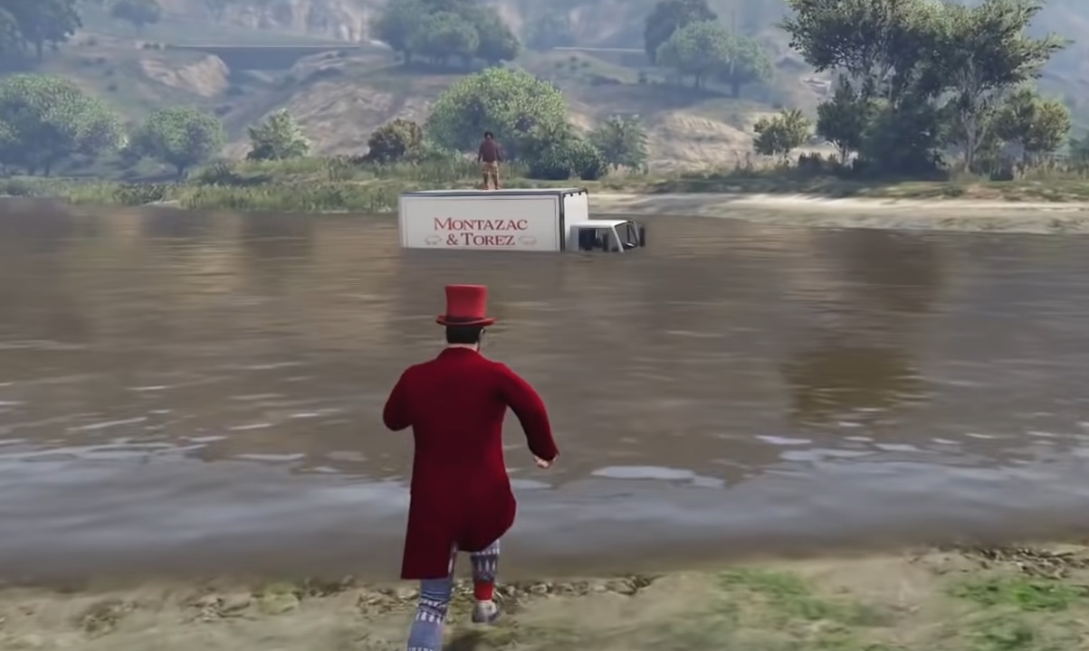 Une camionnette a fait l'erreur d'emprunter un pont suspendu en bois, construit temporairement en raison de la destruction d'un pont en béton par une précédente inondation, au-dessus d'une rivière en crue à Uryum, en Russie. Destiné aux piétons et véhicules légers, le pont n'a pas supporté le poids de la camionnette ainsi que la pression de l'eau et a fini par céder, plongeant alors la camionnette au fond de la rivière. Heureusement, le conducteur a réussi à sortir de son véhicule pour rejoindre la rive à la nage, aidé par quelques témoins de l'accident. --> Pas d'quoi