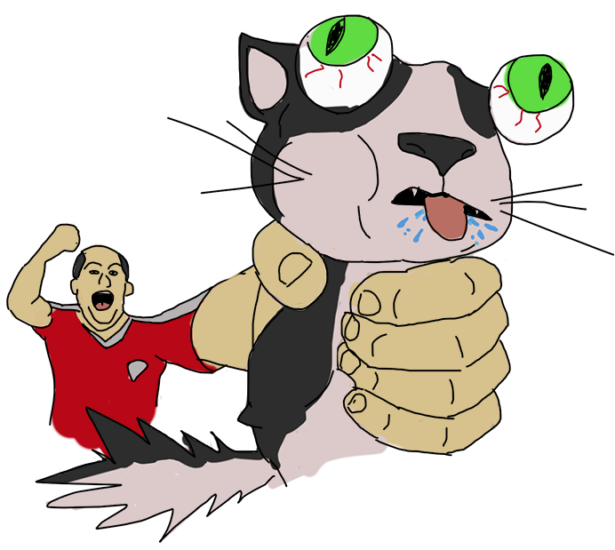 Je devrais être content que le chat s'en sorte.... mais y a un côté super flippant avec la réaction disproportionnée de la foule, les cris, les gestes de victoire et de puissance, les gens qui veulent s'approcher pour filmer... Perso ça me fait flipper.