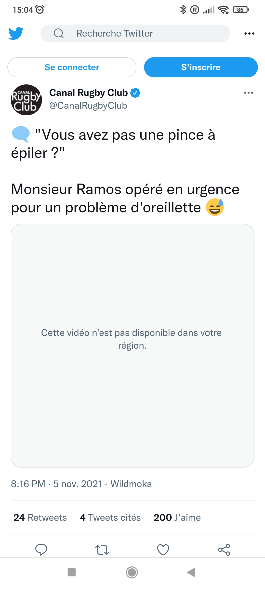 Citation : Lecteur Twitter: Interdit pour la belgique.... Citation : Citation : Ah ben pour l'Ile de France faut croire aussi... x) Citation : En Corse de même, vidéo non accessible. Est-ce que quelqu'un qui habite en France peut nous dire si ça marche chez lui?