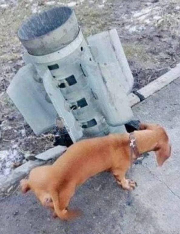 @Crazy-13  Salut non, C'est le premier étage d'une une rocket 9M55k de 300mm d'un lanceur smerch. Une fois que son carburant du  propergol solide consumé, il retombe.