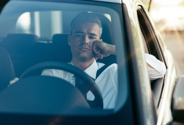 Je crois que celui qui film n'a pas mis sa ceinture. 1) il film au volant 2) il a pas mis sa ceinture -> il se met en danger