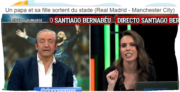 Pensant que le Real Madrid va être éliminé de la Ligue des Champions en demi-finale face à Manchester City, un papa quitte le stade Santiago Bernabéu avec sa fille avant la fin du match et répond à un journaliste en lui disant qu’il préfère que son enfant ne soit pas triste d'avantage.