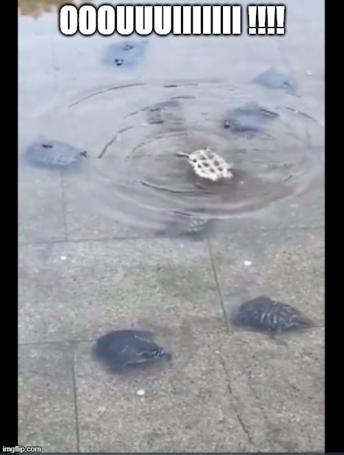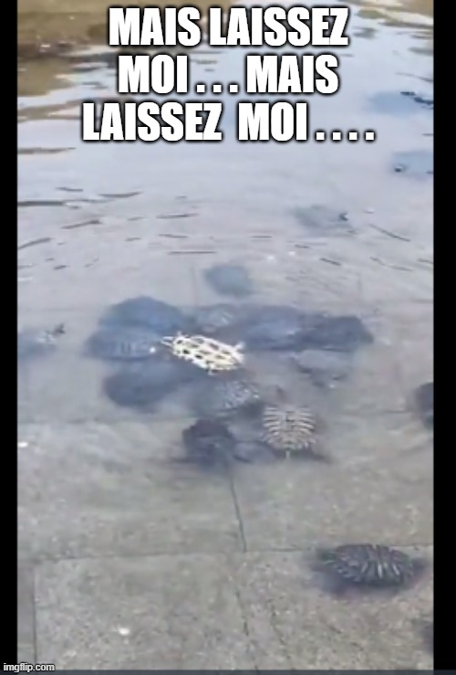 Citation : ses copines lui viennent en aide Tu parles ! Ça s'agite = ça se mange donc on vient. Si la tortue se retourne c'est juste un coup de bol.