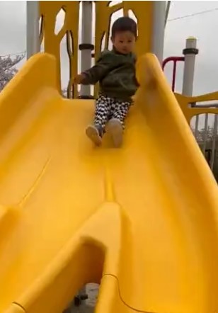 Filmer son enfant qui fait du toboggan c'est normal... mais filmer son enfant qui fait du toboggan en voyant une jambe de chaque côté d'un obstacle, je dis NON!
