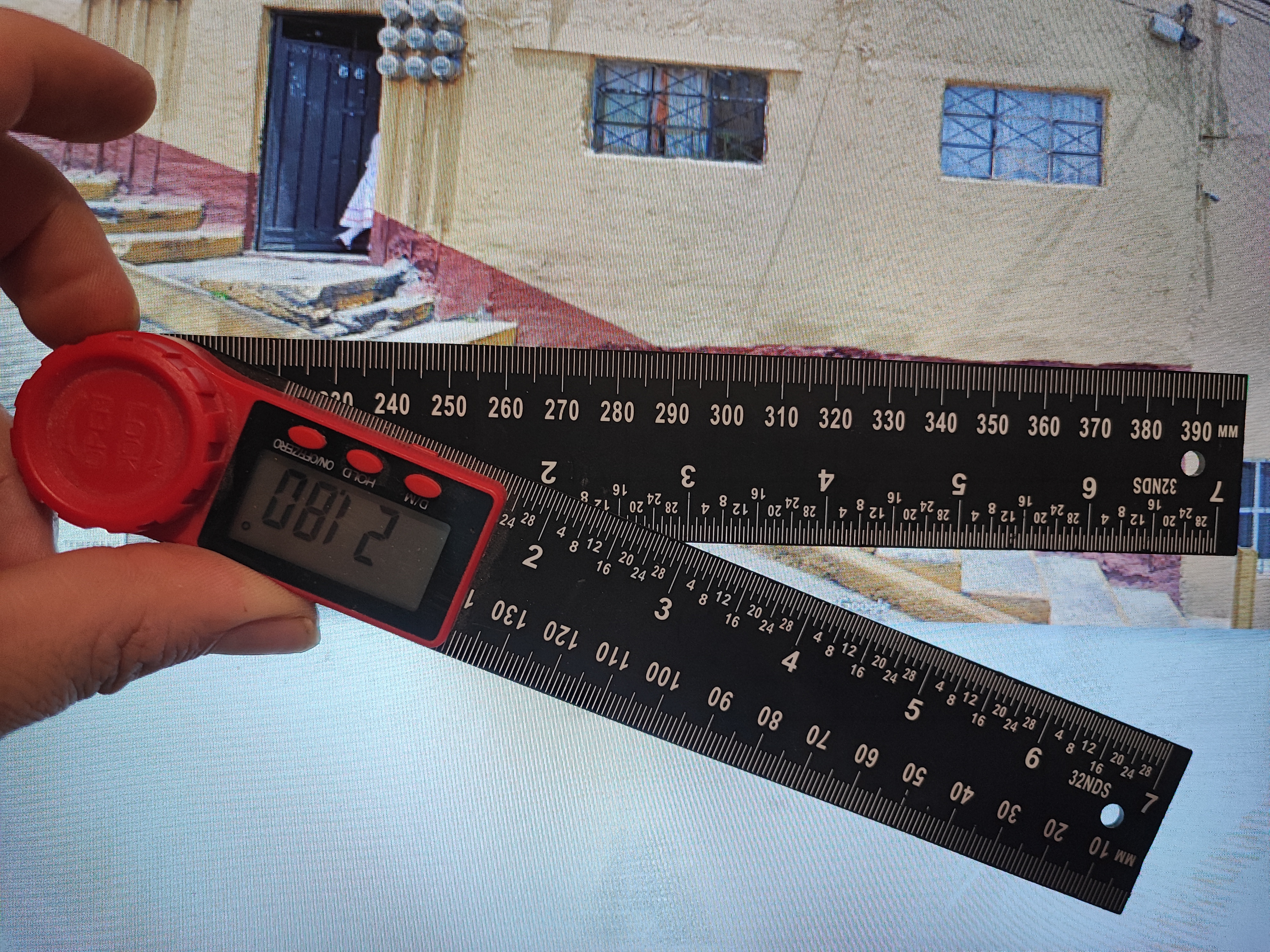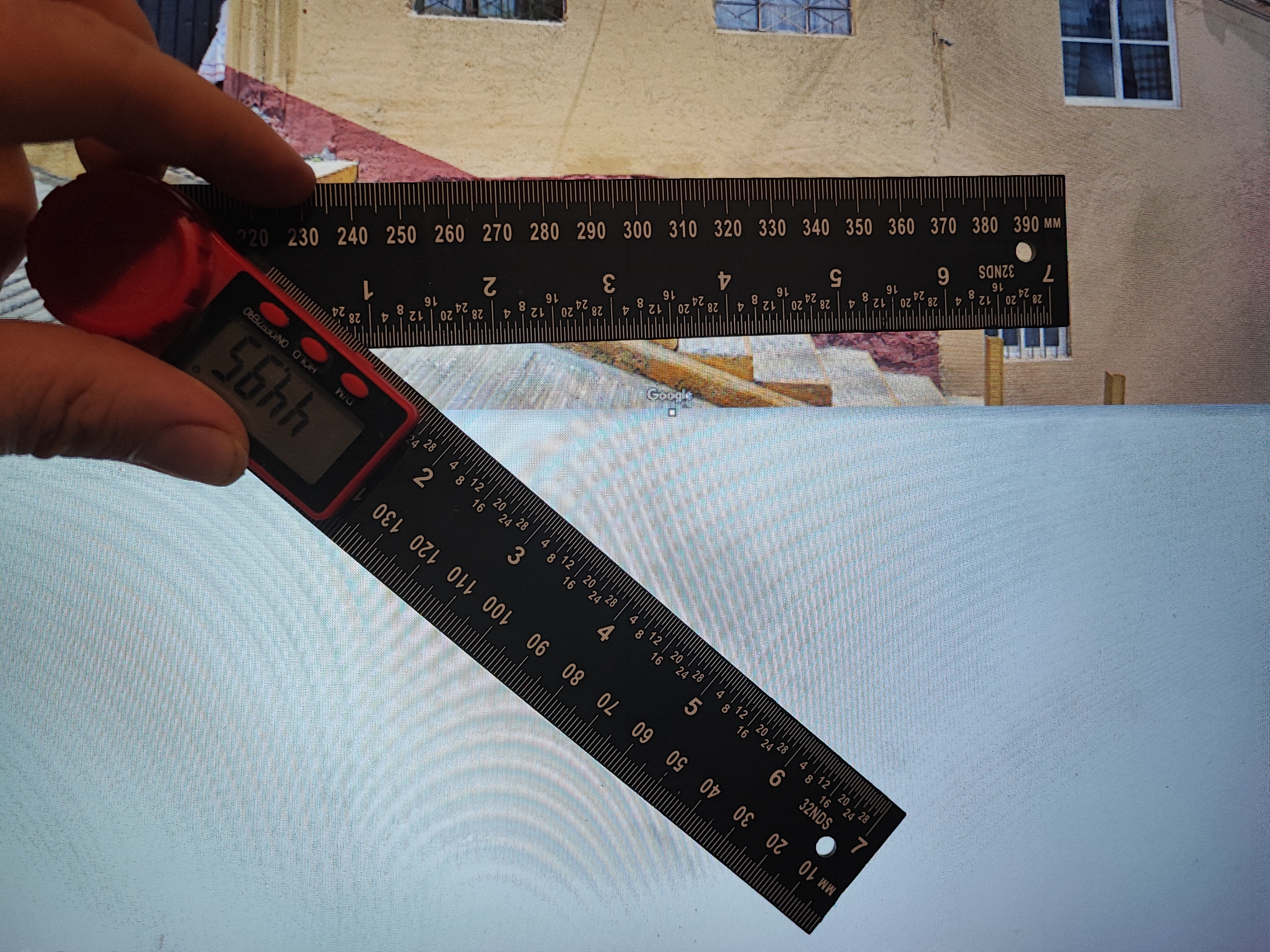 En ajoutant le coefficient de l'hypoténuse + racine carré de la tangente, je trouve un angle de 32 °%.