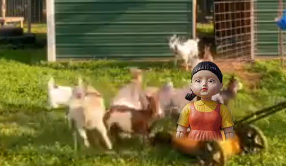 Mais quand même, prendre le temps de poser son téléphone, ne cadrer ni la tondeuse, ni la cabane, se douter que les chèvres vont s'échapper horizontalement plutôt que verticalement...