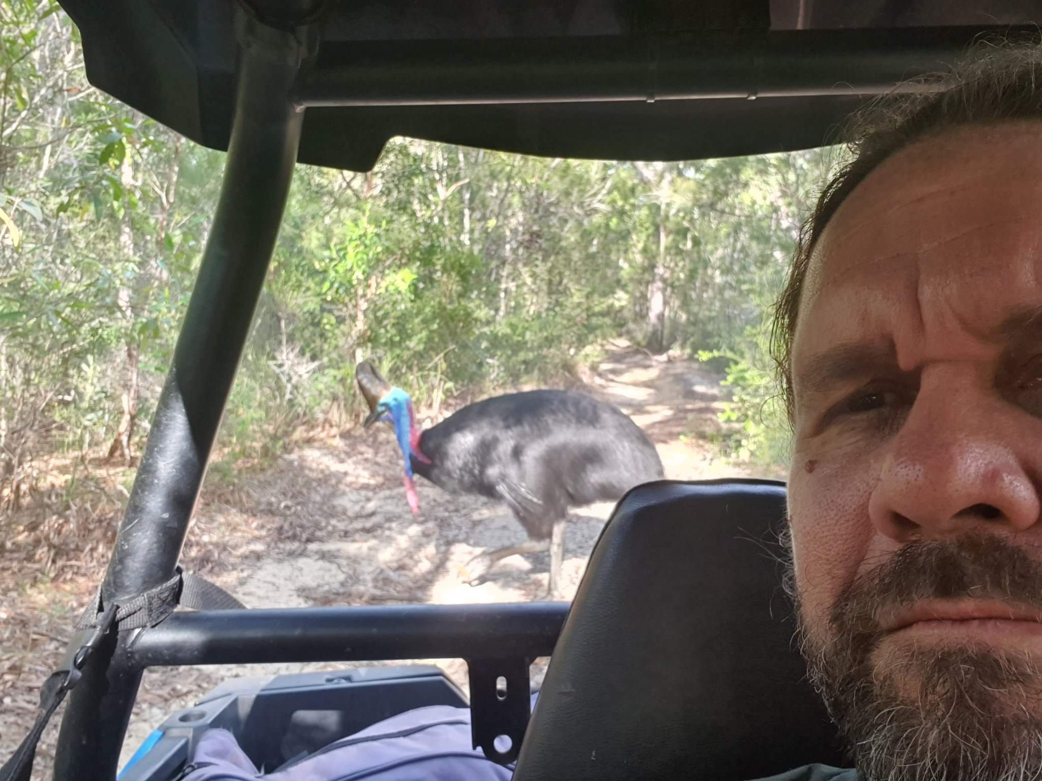 Ce casoar est un gros pervers qui veut à tout prix voir sous la Jeep des filles des gardes forestiers.