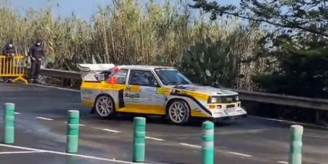 La Quattro Sport Coupe est en effet initialement une voiture de Rallye Groupe B, une catégorie qui n'existe plus depuis 1986, car jugée trop dangereuse (pour du rallye). J’imagine que le véhicule a été modifié pour coller avec les normes actuelles. |