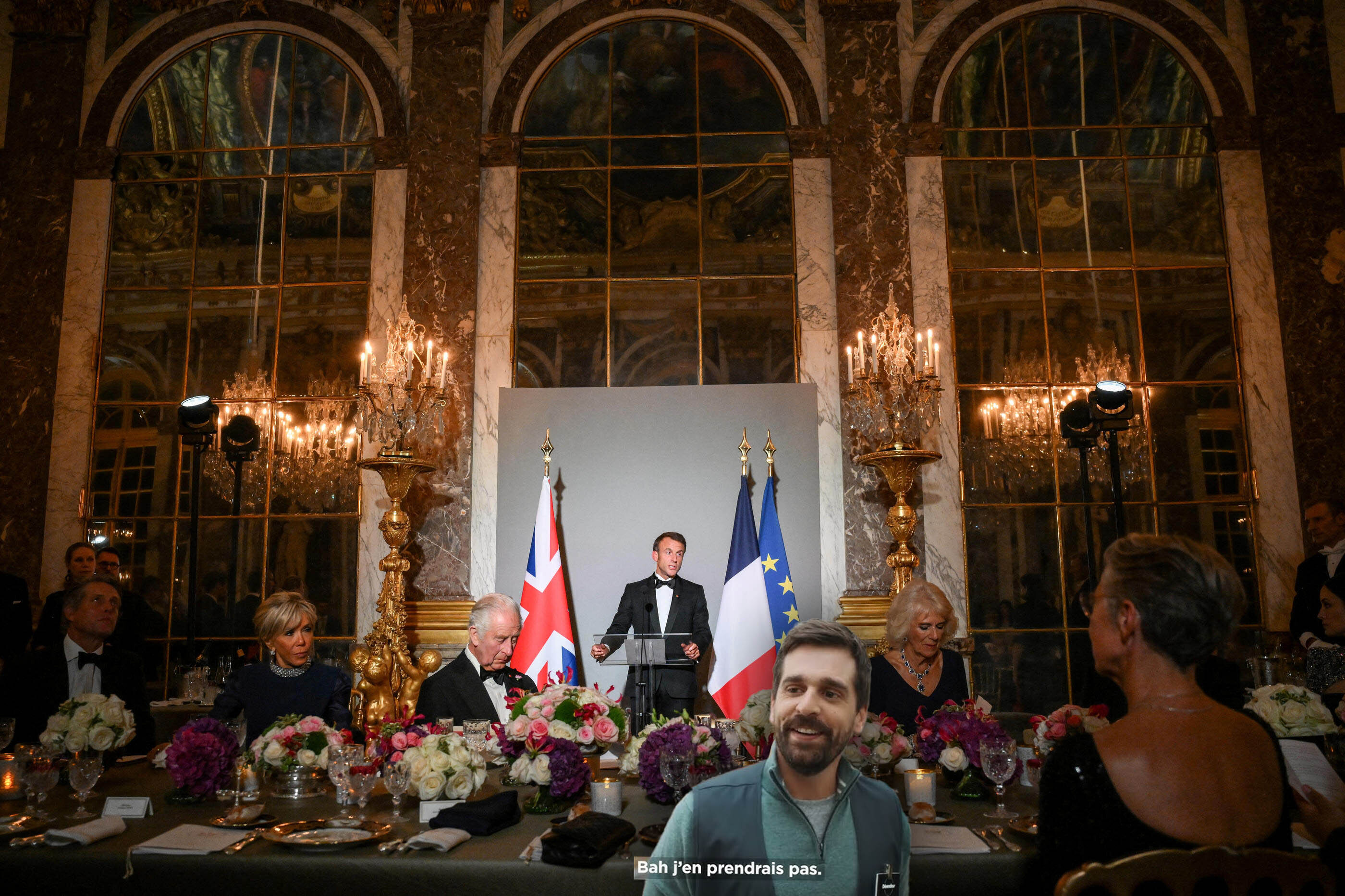 le gouvernement:" les gueux arretez de trop consommer, de trop polluer avec votre voiture, de partir en vacances etc..." le même gouvernement: "organisons le repas le plus cher de l'histoire pour grandes oreilles, dépassons notre budget de 12.5 millions d'euros, voyageons en jet aux 4 coins du monde pour bouffer des petits fours etc..."