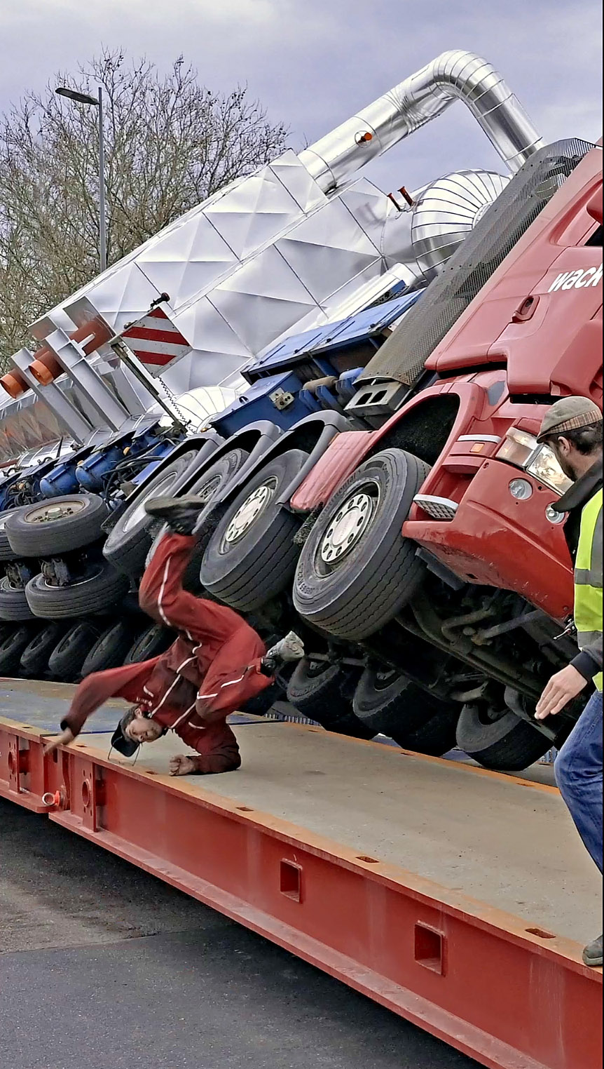 Mais si ca fonctionne avec la grue de 800 tonnes, pourquoi ne pas l'avoir utilisé d'entrée de jeu plutôt que de faire joli avec un camion à 1.000 roues. C'est sûr que c'est moins rapide et que ca passe moins facilement partout