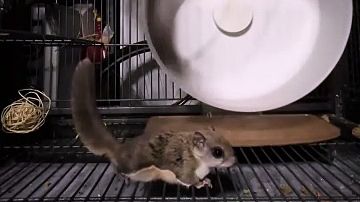 Dans une cage, deux écureuils volants utilisent une roue en même temps mais chacun avec une technique différente. Une vidéo filmée près du Lac Ronkonkoma dans le Long Island (Etats-Unis) par une soigneuse agréée de l'état de New York.