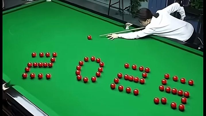 La joueuse chinoise de billard Pan Xiaoting souhaite une bonne année 2026. Le nombre 2025 est écrit avec des boules sur le tapis de billard. Elle tire une boule et la place sur le 5 pour le transformer en chiffre 6.