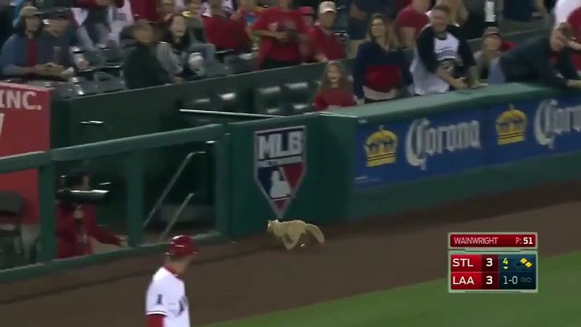 Pendant un match de baseball, un chat s'est retrouvé sur le terrain. Paniqué, il s'est précipité dans les tribunes. Le caméraman a réussi à suivre le chat sans le voir en observant la réaction du public.