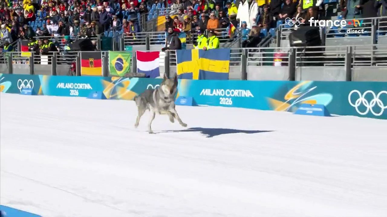 Le mercredi 18 février 2026, lors des épreuves de ski de fond aux Jeux olympiques de Milan-Cortina 2026 en Italie, un chien loup est apparu sur la piste en plein parcours. L’animal a tranquillement franchi la ligne d’arrivée avant de repartir, perturbant brièvement la course mais sans causer d’accident.