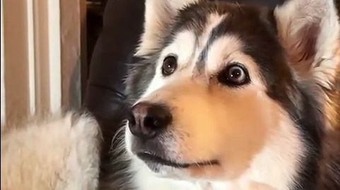 Installé confortablement devant la télé, Penelopii un chien (croisé Husky et Native American dogs) regarde le film « Je suis une légende » avec Will Smith. Et on peut dire qu'elle est très captivée par les scènes d'action.