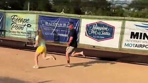 Un homme court avec sa fille mais il est plus occupé à faire attention à ne pas la dépasser qu'à regarder devant lui. SPOILER : Il se prend un poteau Afficher le spoil