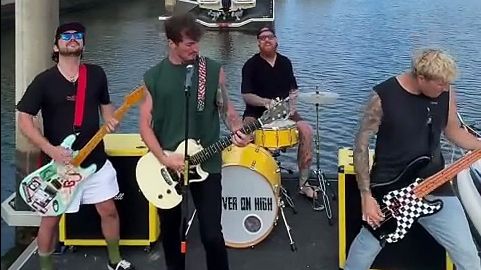 Vous connaissez l'histoire de Plouf le batteur ? C'est l'histoire d'un batteur qui jouait au bord de l'eau avec son groupe de musique. En se levant, il fait tomber sa chaise dans l'eau et quand il va pour s'assoir, il rejoint le tabouret dans l'eau. Pour info, il s'agit du groupe FOREVER ON HIGH originaire du Brisbane en Australie.