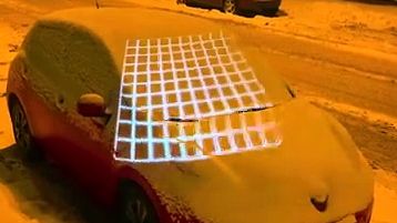 Nikita Merkushin (@noizebro) a sorti son projecteur pour faire du mapping vidéo sur une voiture enneigée. La voiture se retrouve avec des yeux du film d'animation Cars