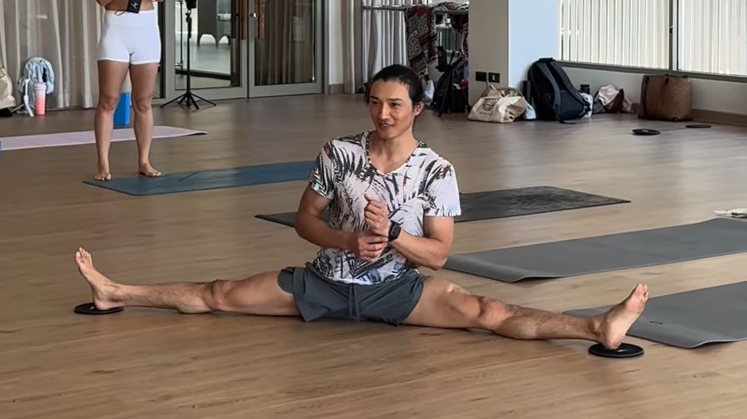 Lkhagva Ochir, ancien artiste au Cirque du soleil et professeur au AcroMongolia, est assis sur le sol en grand écart et nous montre comment se relever avec classe sans utiliser ses bras, juste avec la force de ses jambes (adducteurs, fessiers, quadriceps, ischios). Une démonstration qu'il a fait devant les élèves de AcroMongolia, une école et centre d’entraînement spécialisé dans la contorsion, l’acrobatie et la souplesse extrême. L'école a été fondée par Lkhagva Ochir lui même.