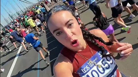 Une femme qui fait le marathon de New York est montée sur un muret entre deux voies et filme les participants. Comme les coureurs avancent et qu'elle est immobile, on a l'impression que c'est elle qui glisse sur le muret. Une illusion d'optique qu'on ne voit qu'une fois, quand le cerveau a compris, c'est finit.