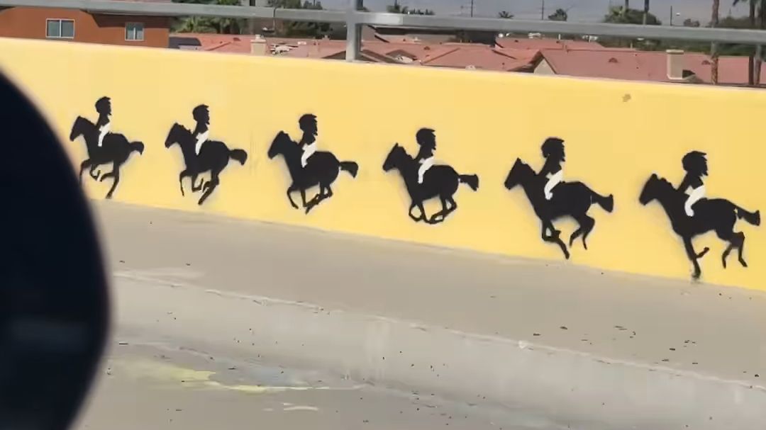 Dans la ville d'Indio en Californie, les automobilistes peuvent observer de l'art animé sur le bord d'une route. Un cheval se transforme en pégase puis en oiseau